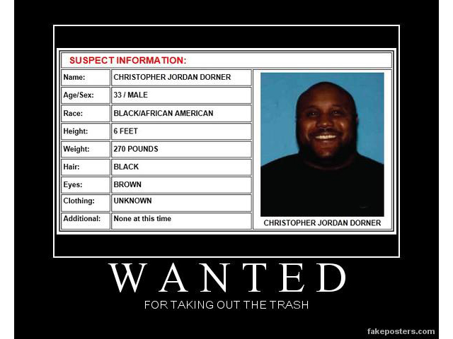 EPRCIChristopher Dorner taking out the trashChristopher Dorner. Wanted: For taking out the trash. | |