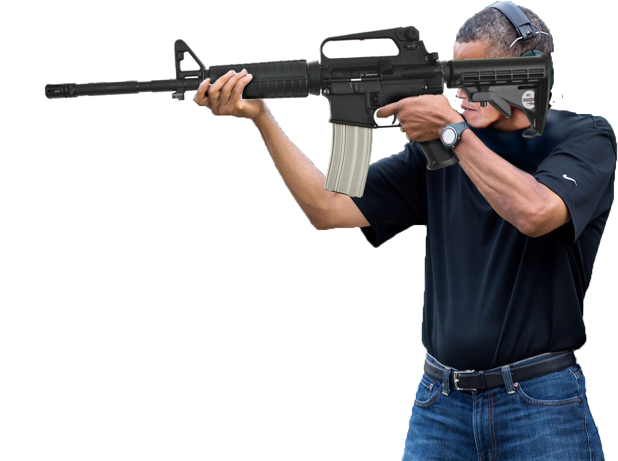 EPRCIObama shooting an AR-15 (exploitable)The Whitehouse says about this photo: “This official White House photograph is being made available only for publication by news organizations and/or for personal use printing by the subject(s) of the photograph. The photograph may not be manipulated in any way and may not be used in commercial or political materials, advertisements, emails, products, promotions that in any way suggests approval or endorsement of the President, the First Family, or the White House.” So here’s a copy for y’all to manipulate! | |